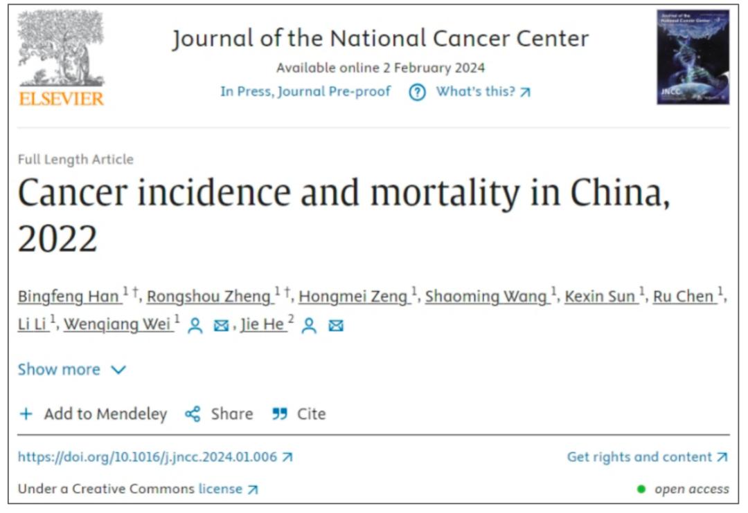 ①Cancer incidence and mortality in China, 2022.Journal of the National Cancer Center.