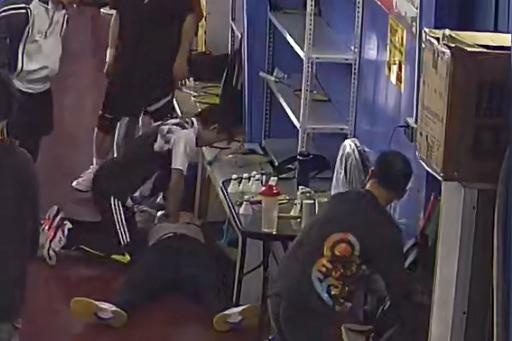 王弈轩在做心肺复苏 图为羽毛球馆监控画面当时,王弈轩正在球馆练球,突然听到父亲的呼喊:“小王!有人出事了!”他赶紧上前查看情况,只见谢先生面色苍白、口唇发绀、呼吸不振、四肢抽搐,大家围上来呼叫谢先生的名字,但没有任何回应。王弈轩在触摸颈动脉判断心跳骤停后,当机立断,开始胸外按压,并呼喊热心人士拨打120、寻找AED。后来,观察到谢先生可以张嘴,他开放气道、按流程进行了人工呼吸。大概十几分钟后,病人逐渐有了生命意识,接着,王弈轩的父亲与球场热心人士接力进行胸外按压,保证急救的持续性和有效性,直至谢先生重新开始自主呼吸。
