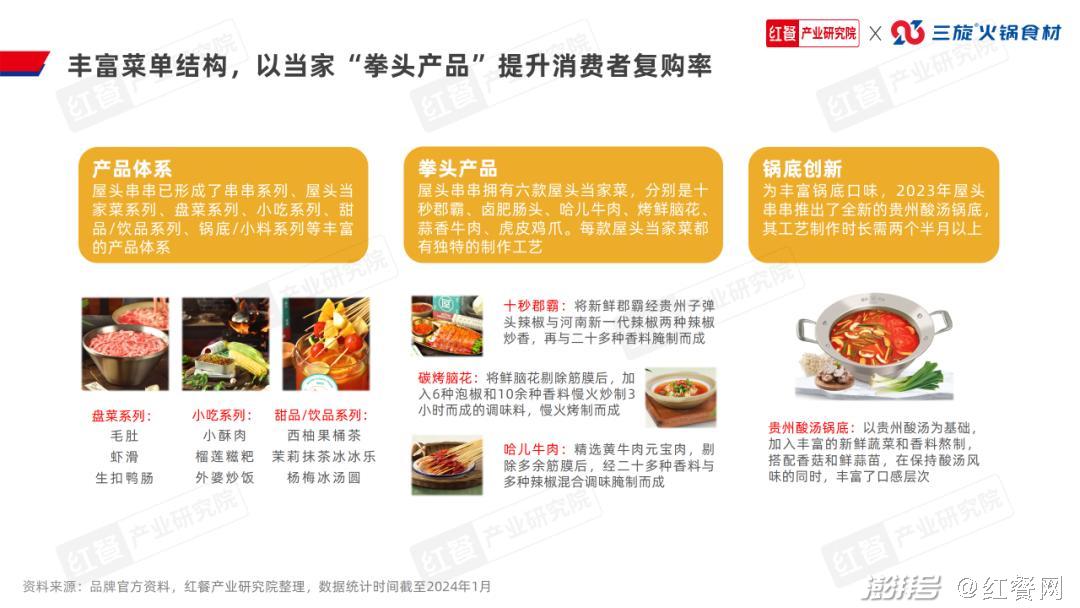 从“自创”到“共创”,串串火锅产品创新速度加快近年,深耕串串火锅赛道的品牌纷纷寻求突破。从食材到菜单结构,品牌都进行了优化,还加强了与上游供应链企业的联合共创,产品创新效率得到了较大提升。