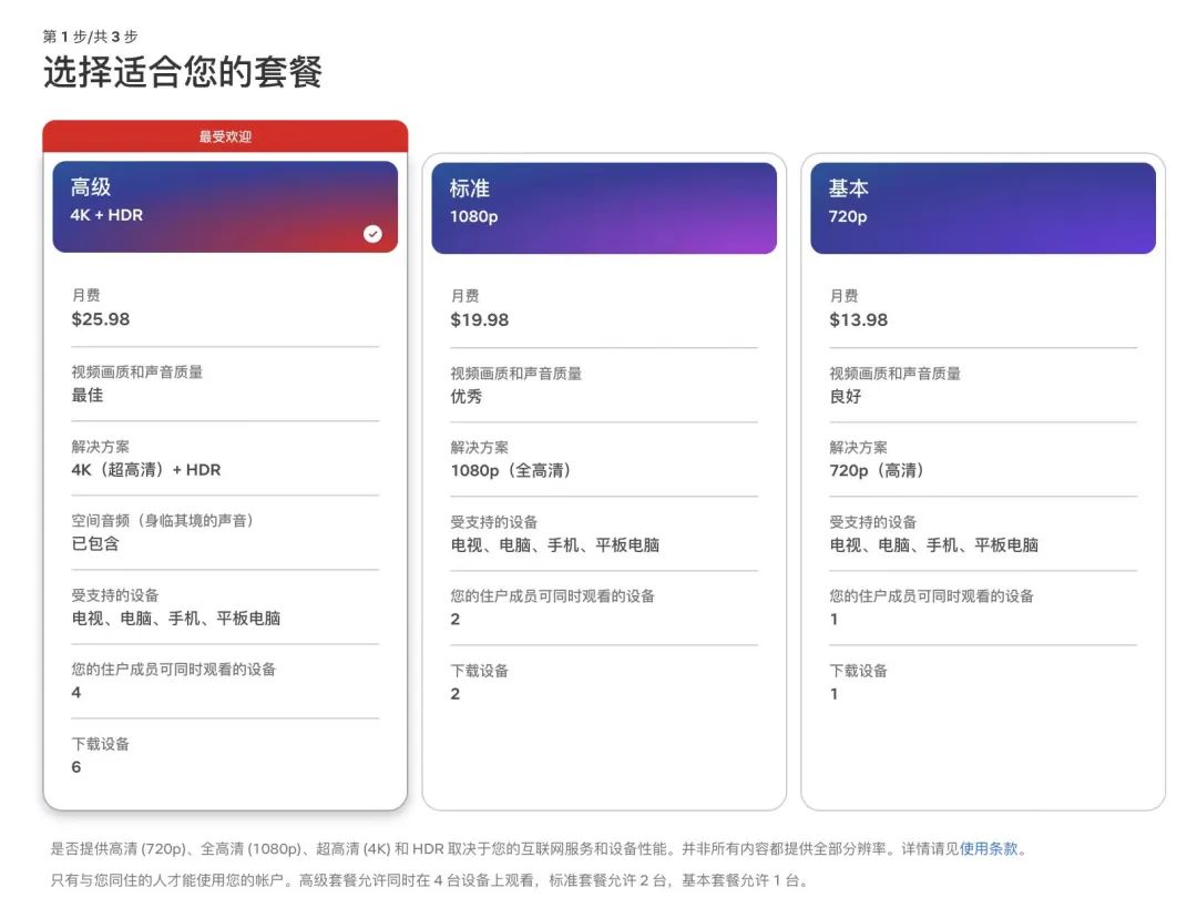 奈飞不同套餐的视听品质第三,粉丝运营精细化。