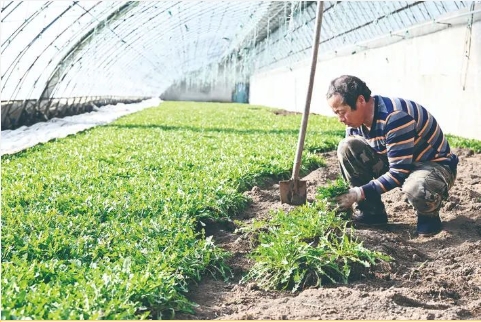 “婆婆丁一般每年8月播种,12月开始上市。婆婆丁特别好管理,只要及时除草就行,不用打任何农药。现在正是婆婆丁口感最好、最适合销售的时候,一棚婆婆丁半个月左右就能卖完。”李铁山一边挖着婆婆丁一边介绍说,他家有5栋大棚,都种婆婆丁,目前两栋大棚的婆婆丁正在销售,另外3栋春节前后上市,5栋大棚错峰种植,先熟的卖完时,其余的正好赶在春节上市,售价能达到20多元/公斤。