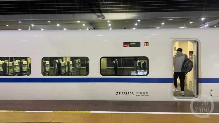 15站台处于上客阶段的两辆列车之一。摄影/上游新闻记者 沈度