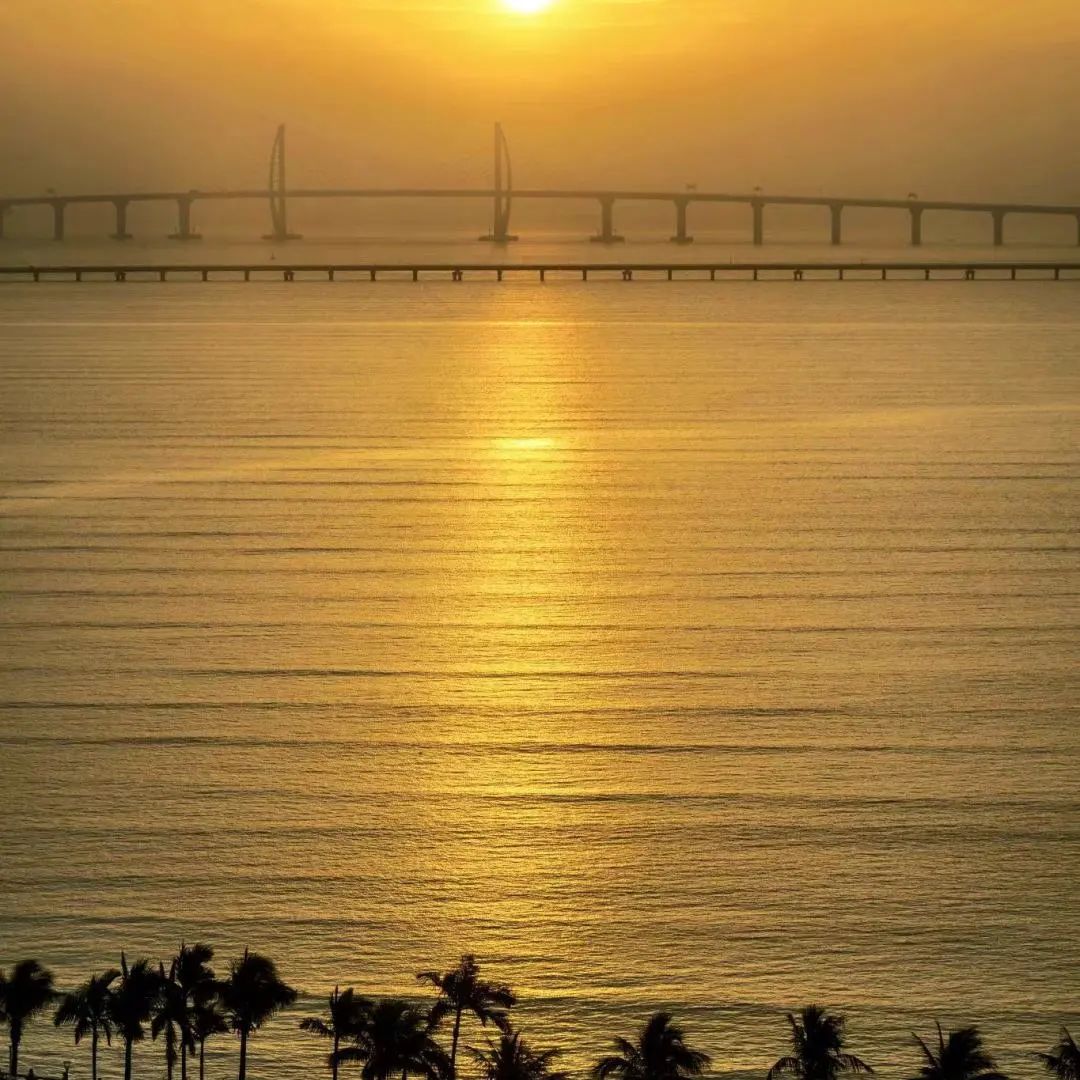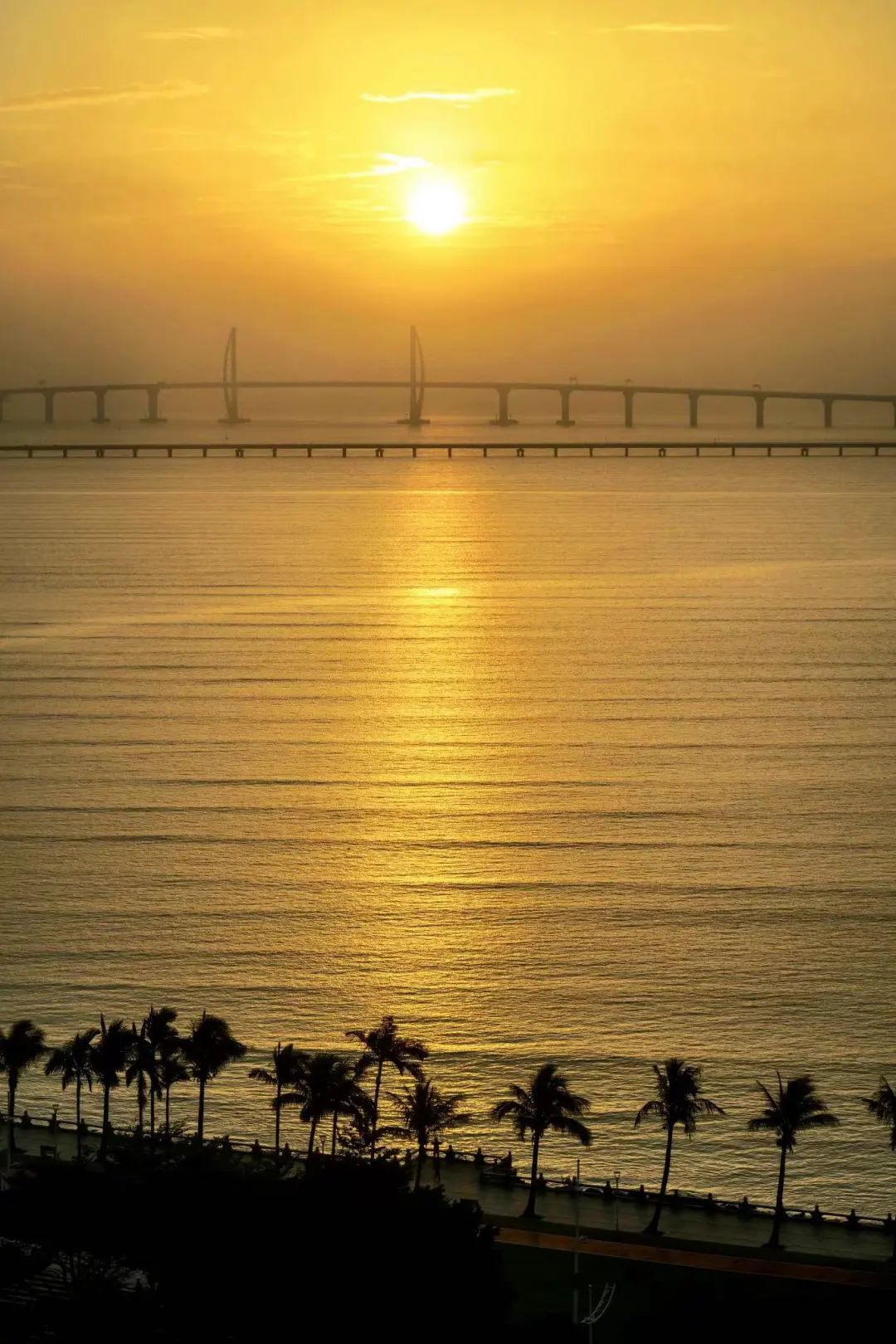 “这张照片拍摄于珠海市香洲区拱北水湾路的高楼,早晨七点,晨曦微露,海面上呈现出一抹金辉,那一道金光直击我的心灵。远处是港珠澳大桥,朦朦胧胧中我感受到它的温柔,但又不忘这座桥的辉煌和奇迹。我想,这就是一种刚柔并济吧。”—陈奕孜