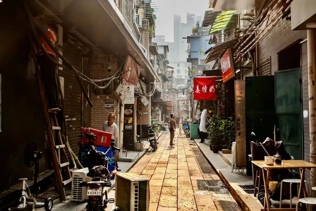 “这张照片来自广州老城区的一个小街道。当时时处下午,夕阳正好,把狭窄的小路照得金黄,路中心和路旁的人、错落的小店和楼房都让整幅画面充满烟火气也更具层次感。当时我所站的地方就是路口处有工人在搬空调,短短几秒间我就偶遇了这样的广州,一个生活里的广州、一个具有人文气息的广州。邂逅这样的场景让我的旅行意义非凡。”—李小卓