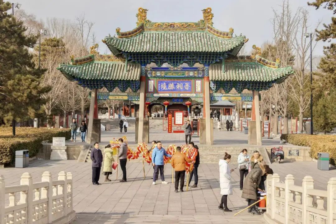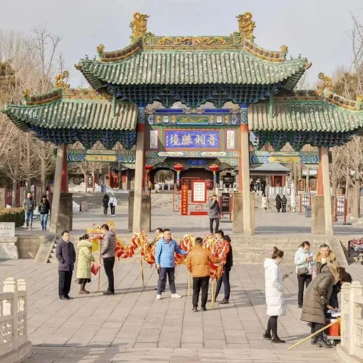 “这张照片是今年元旦后我在山西太原晋祠公园门口拍摄的。此时正值旅游淡季,晋祠并无太多游客,多是些本地市民。晋祠牌坊高耸,市民们有的在舞龙,有的在聊天。这个场景充满了生活的气息,让人感受到这座小城独有的活力。