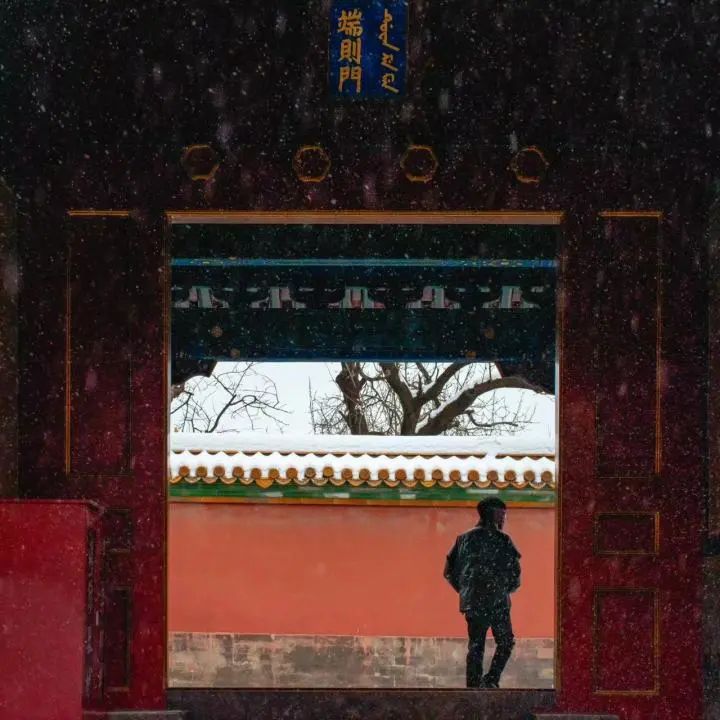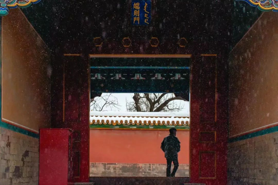 “这张照片拍摄于故宫。这是我第一次来故宫看雪景,那天非常冷并且刮着很大的风,在路过端则门前的这一刻大风吹落了屋檐上的积雪,仿佛下雪一样,门前只剩下一个路人。一切都是这么巧合,我举起相机按下快门记录下了这一刻。”—林诗淇