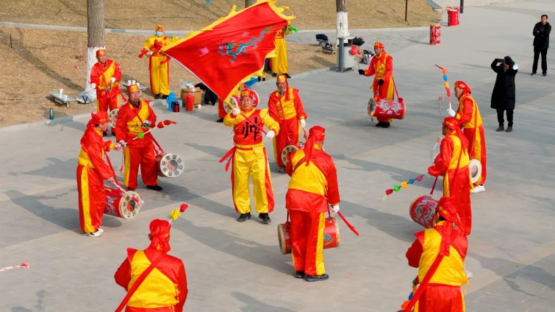 “太平鼓传承下来,我们庄子上就太太平平,人们的日子过得红红火火。”锣鼓手刘延仁今年73岁,看上去精神矍铄,他打了一辈子太平鼓,是社火队当之无愧的头锣。