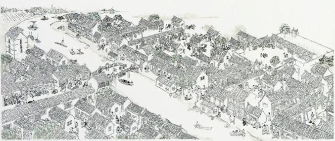 虹桥集镇概貌图(20世纪50年代初,韩松画)