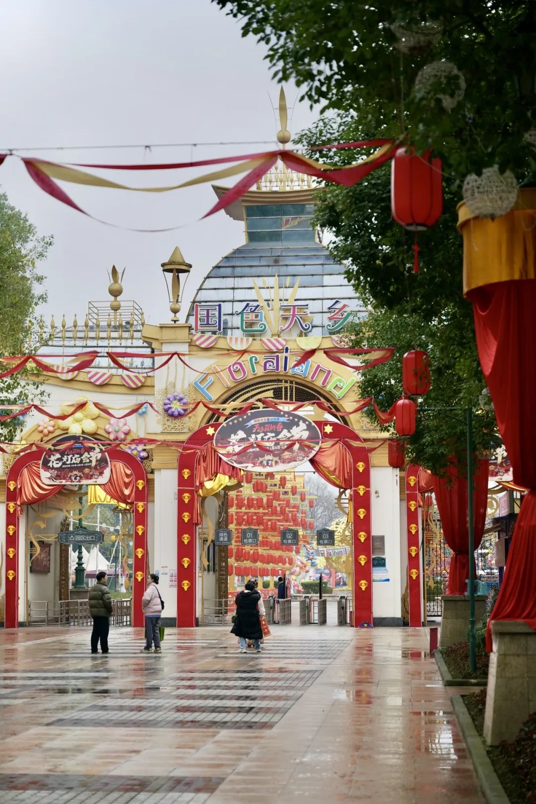 陆地乐园会场和童话世界会场,还未进入,铺满眼底的红,便传递出浓浓的年味。