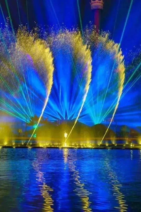 国色天乡陆地乐园里,还有非遗打铁花、汉服巡游、音乐喷泉秀、魅力国风秀、游园会、国风快闪、国风杂技......