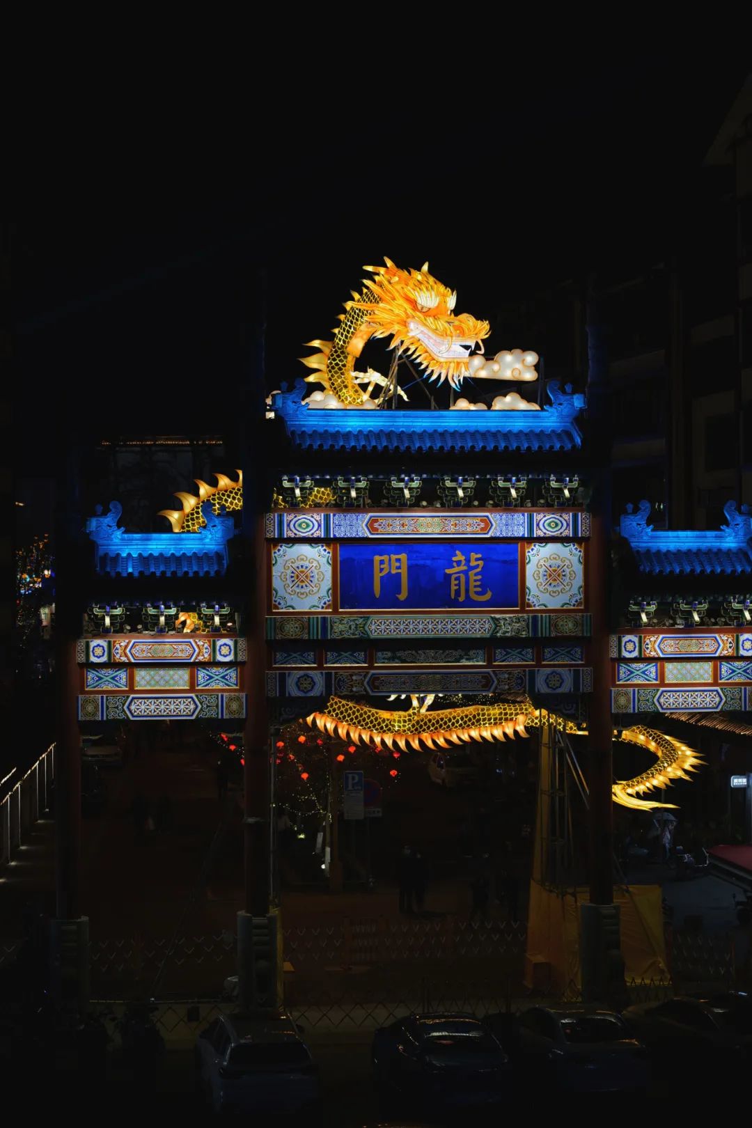 在亮灯仪式那天,小都就去文庙赶了个“庙会”早场。坐着公交抵达文庙时,远远地,就看见一条飞龙矗立在龙门之上,相当霸气,等到晚上亮灯时,更是一场视觉盛宴。