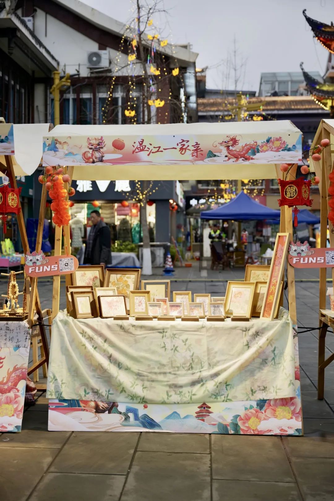 街上人头攒动,话连话,人挨人,谈笑之间,脚步不断在“文庙艺术迎春市集”的各摊位间切换。