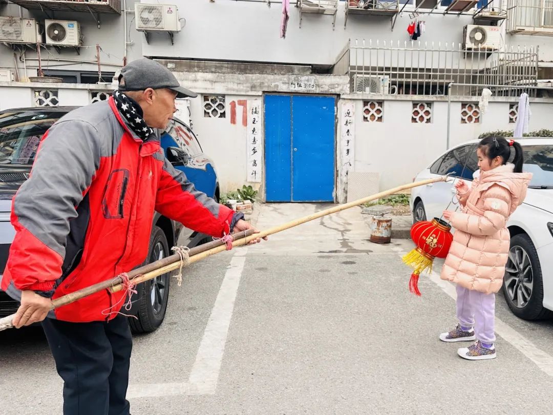 淞南七村小区的志愿者伏师傅每年都会自己买来红灯笼、对联、彩旗,用来布置小区。活动现场,社区工作人员、“社区小先生”、志愿者拿着装饰品对小区各个角落进行装点。男孩子表示要自己动手挂灯笼,女孩子也不甘示弱,在志愿者的贴心保护下,孩子们比试谁挂得更多更整齐。装点氛围的同时,志愿者也为孩子们讲述了与春节相关的习俗故事。通过大家的巧手协作,小区环境焕然一新,变得更加美观大方。