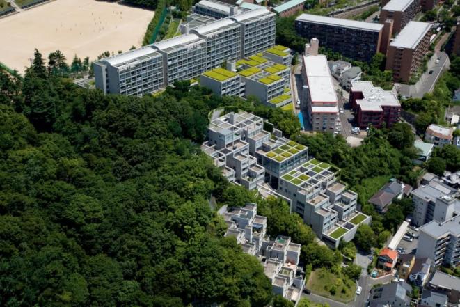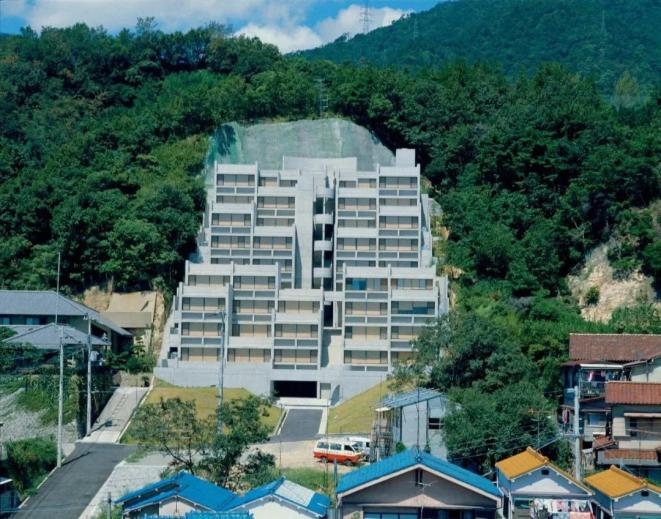 “我想运用斜坡让各个住户保有个性,并且让楼栋之间的空隙变成富有变化又有魅力的公共空间。我选择均质的框架结构以顺应地形,并且在配置时稍稍进行位移。正因为六甲山山麓是陡坡地形,必定会产生格子的立体位移,均质的框架会依地形而不同,自然形成多样的住家形式。”