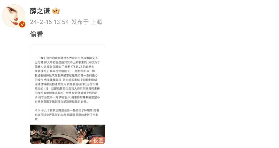 昨日午间,薛之谦发布了一条有关《飞驰人生2》的影评,文中不乏对该影片的赞美。