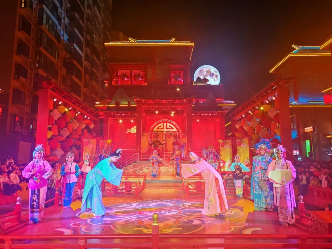 游客们可以在这里听戏曲、提龙灯、尝美食