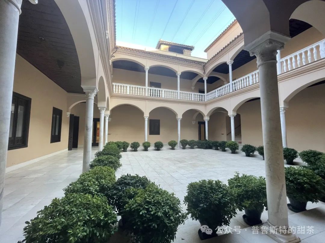 毕加索小时候,这片街区的街道是狭窄的。她还带我们走过街道的尽头,那里是曾经毕加索的学校,九岁的毕加索在那里参加考试。她多次提到弗拉明戈,是毕加索钟爱的,同行pr直呼想去看弗拉明戈。毕加索家里除了他和父亲都是女性。父亲在workshop工作。图书馆在Saint Augustine修道院,父亲经常带着儿子前去。马拉加的很多建筑模仿了马德里和巴塞罗那的建筑,现在的建筑和70年代很不同了,一直在更新改建,现在建筑内部的陈设是21世纪的,外部还是个历史建筑的外观。