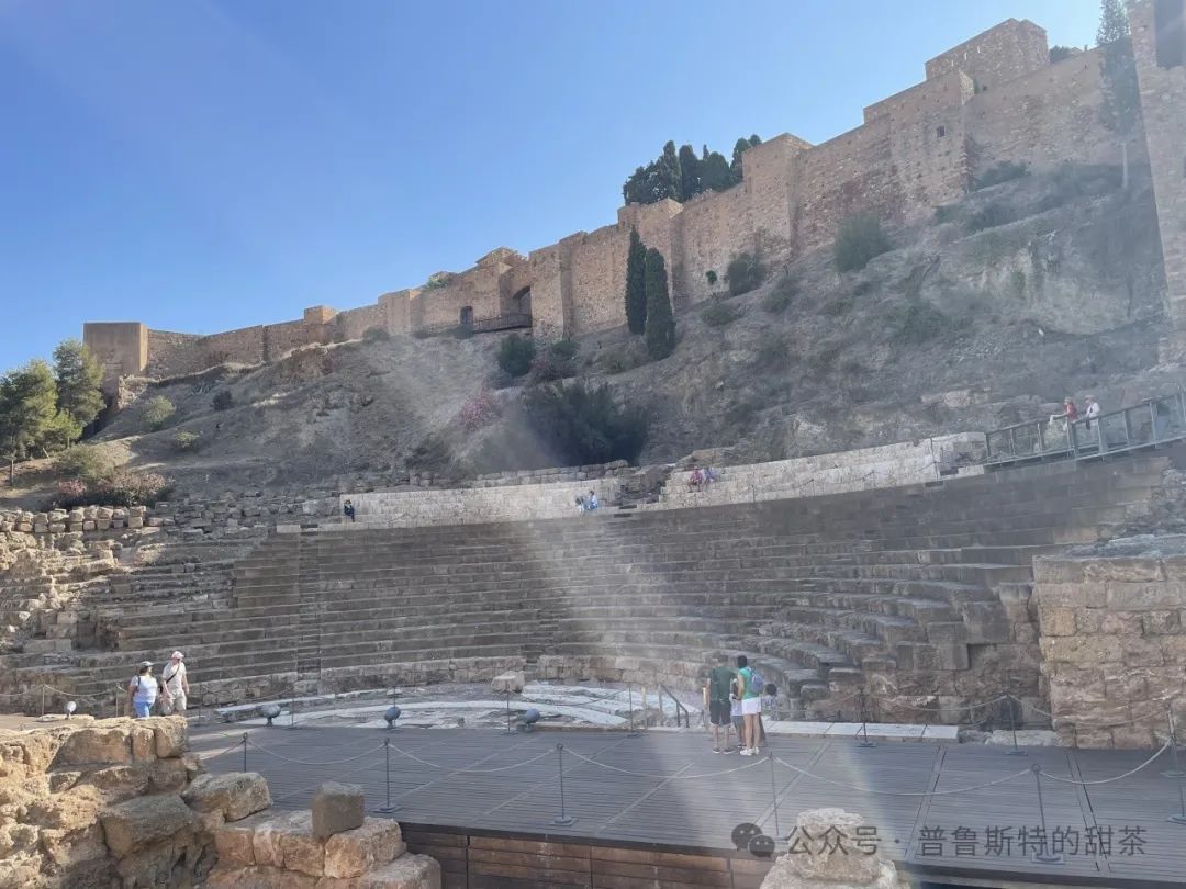 在马拉加的最后一天是Bank Holiday,热烘烘的城市更是热闹,到处都是乐队演奏的声音,铿锵唐皇的管弦乐声尽显节日的氛围。旅游景点更是人流攒动。我排队进入Alcazaba遗址,这里是马拉加穆斯林时代最重要的历史建筑,沿着棕色古堡边上的坡道,穿过一个个门洞,进入古堡的制高点俯瞰周遭现代的楼房和树林,如同穿越到百年前的征伐和守卫。在古堡之下是罗马环形剧场,走在台阶之上,环形的台阶如同环抱起一个特殊的场域,过去的仪式和剧目即将上演。