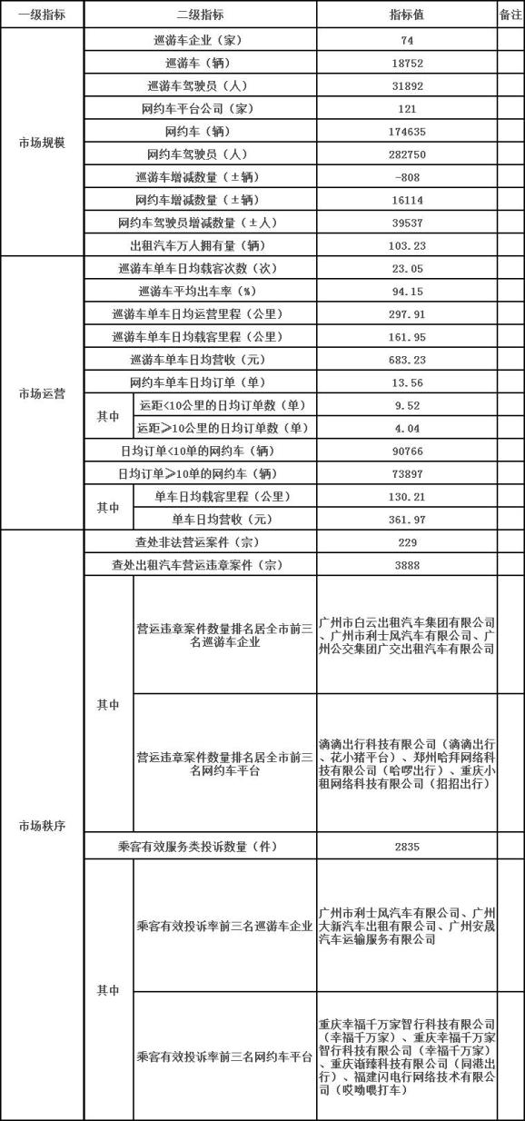 为促进出租汽车客运市场规范有序发展,引导社会资源合理配置,给社会公众合理选择出行方式提供参考,根据《国务院办公厅关于深化改革推进出租汽车行业健康发展的指导意见》(国办发〔2016〕58号)有关要求,现将广州市出租汽车行业2023年下半年(2023年7月1日至12月31日,下同)市场运行监测指标信息予以发布。