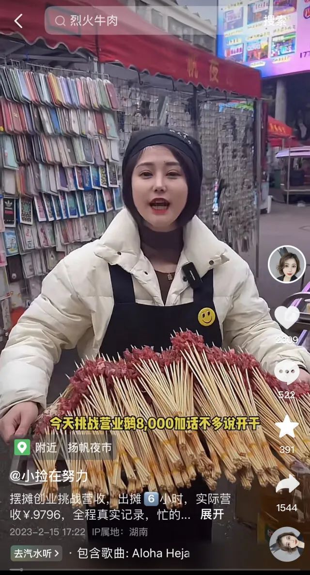 “摊龄”3年的汪思琪不仅积攒了不少回头客,还在社交媒体上收获了千万粉丝。“有些顾客是看到我的直播和短视频后过来的,这几天一晚上能赚四千多块钱。”