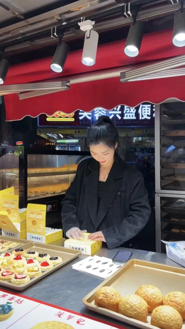 邓倩也是夜市里的老摊主,周边社区居民都知道她的蛋挞铺子。“附近居民会晚上来买蛋挞,当作第二天早上早餐。”