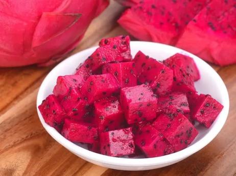 红心火龙果口感较甜,具有一定的抗氧化作用,但其膳食纤维含量较白心火龙果较低,热量也相对较高。因此,在减肥期间,对于想要减肥的人来说,就要适量食用红心火龙果了。
