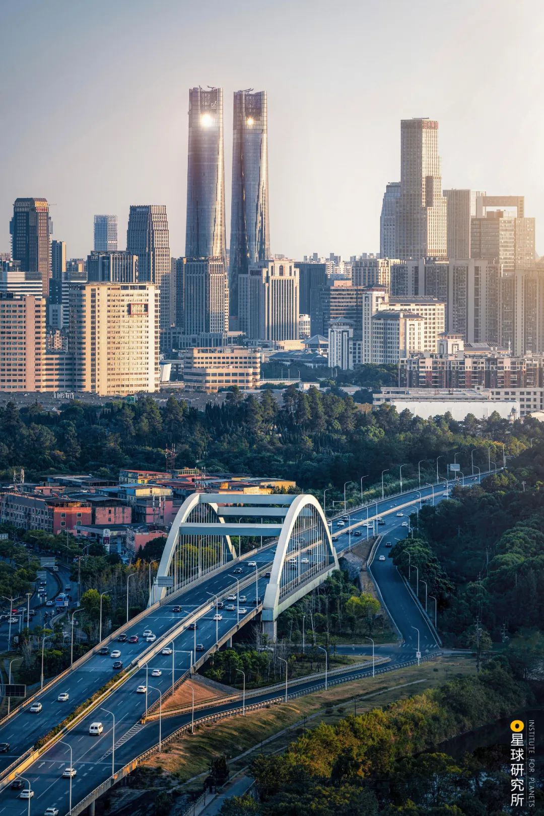 (眺望南昌红谷滩新区双子塔,“阿卡林”为动漫中存在感很弱的角色,摄影师@廖昊)