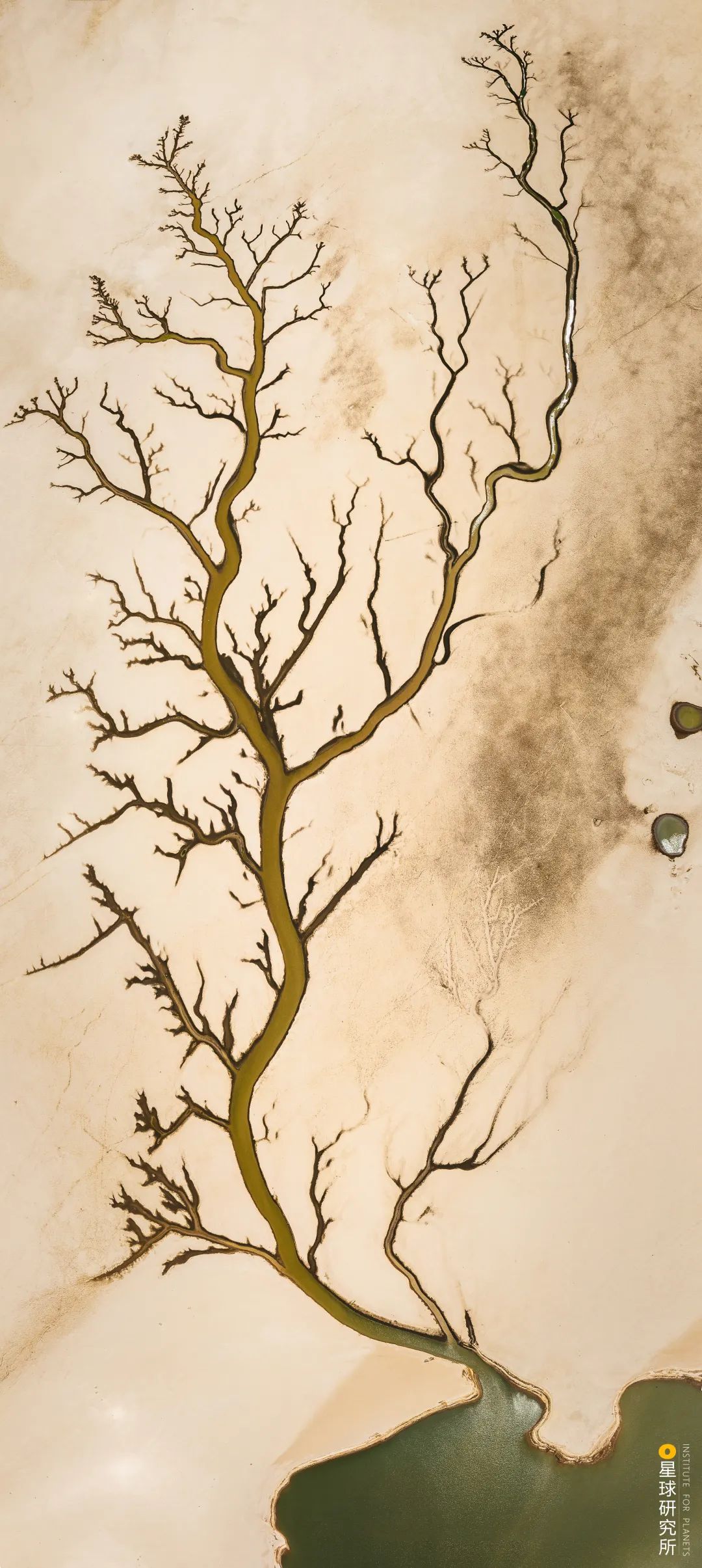 (鄱阳湖滩涂上,水流冲刷形成“大地之树”景观,摄影师@堂少)