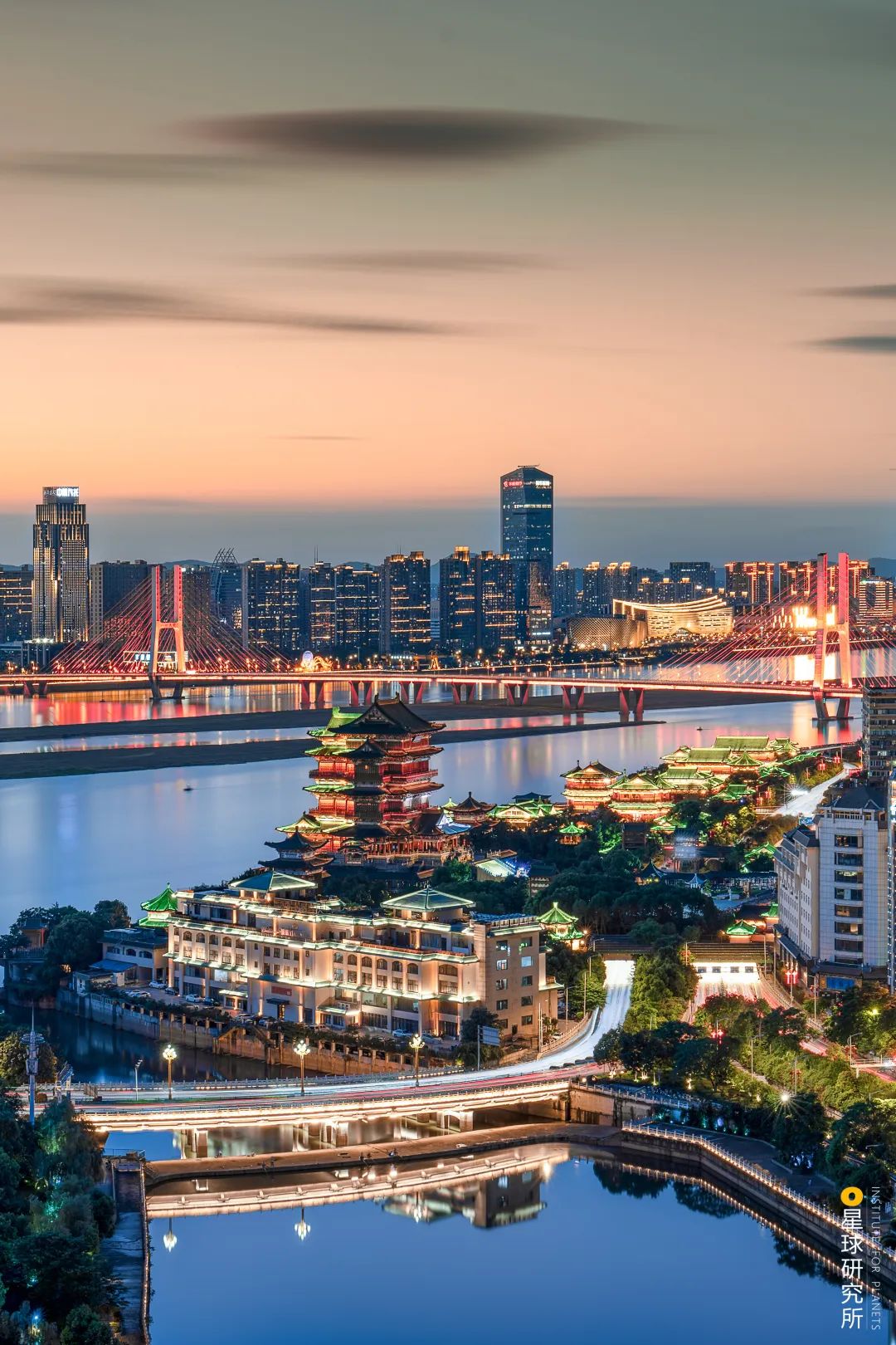 如玉带、碎珠一般遍布城市
