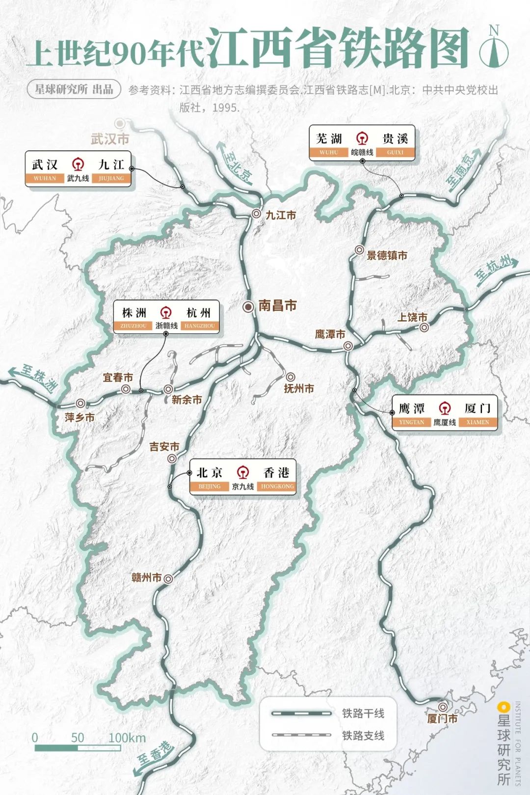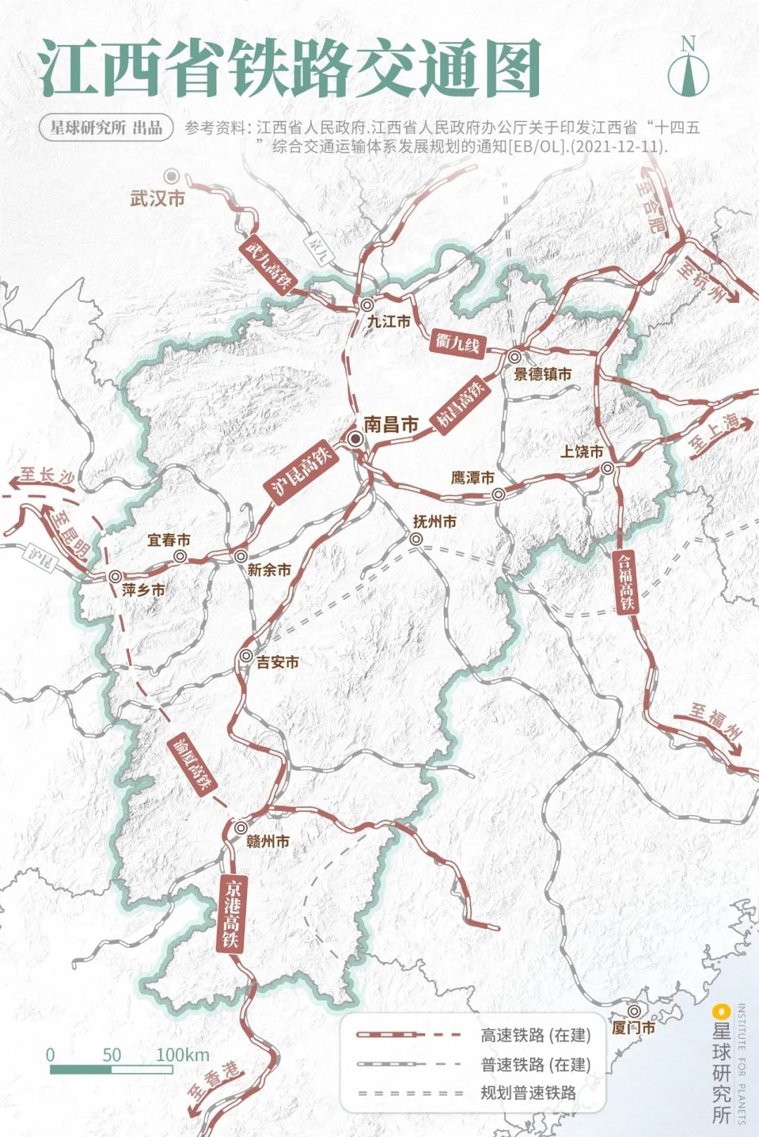 (江西省铁路交通图,制图@俊/星球研究所)