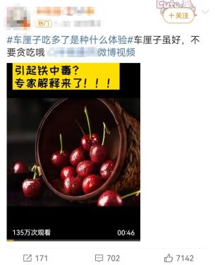 图片来源:新浪微博近日,一条关于“车厘子吃多了是种什么体验?”冲上了热搜。