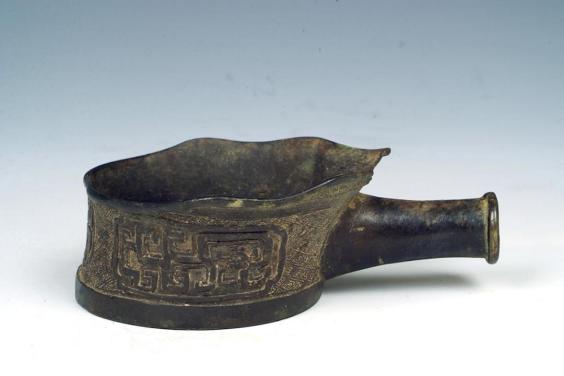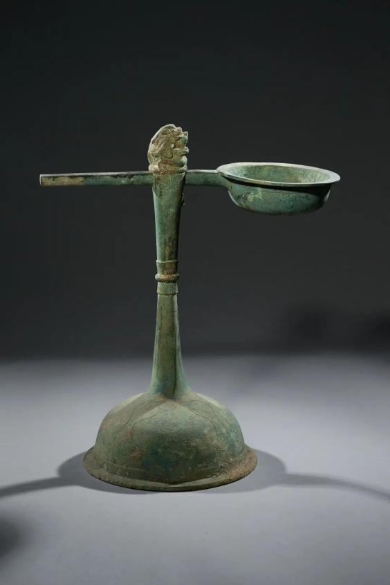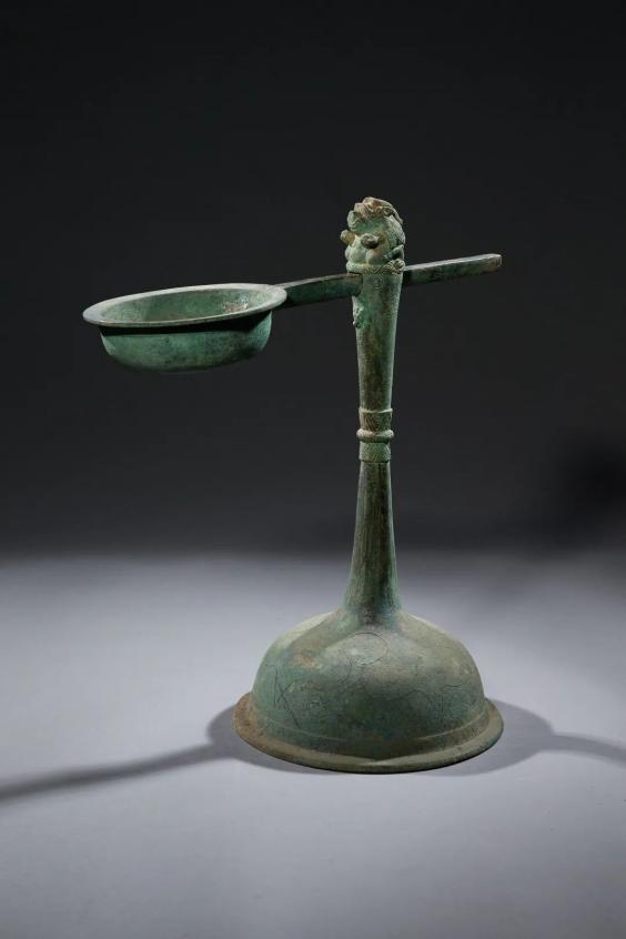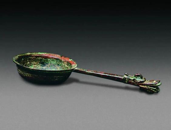 △ 龙首柄铜熨斗,汉代,武威市博物馆藏。熨斗在斗柄尾端铸造龙头,以彰显主人的显赫家世和尊贵的身份地位