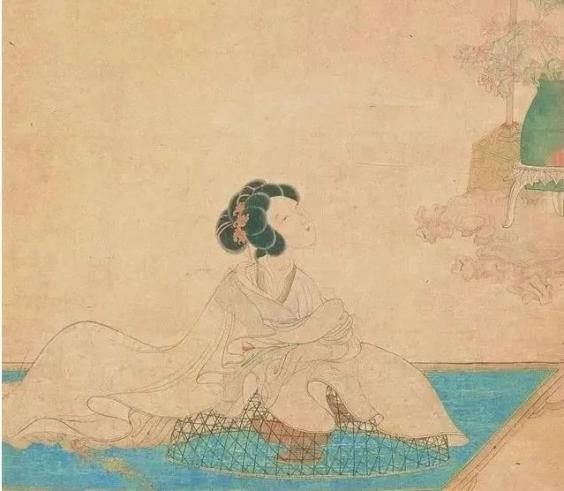 △ 陈洪绶《斜倚熏笼图轴》(局部),明代,上海博物馆藏