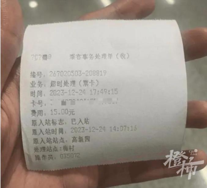 近日,有博主发帖称,在深圳游玩期间,“玩累了,在地铁里休息,待了3个多小时,结果发现出不去了,缴了15元罚款才出去”。