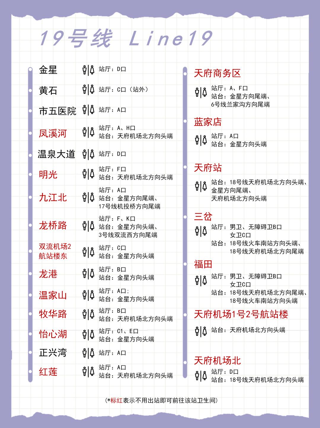 成都地铁各条线路的卫生间分布图