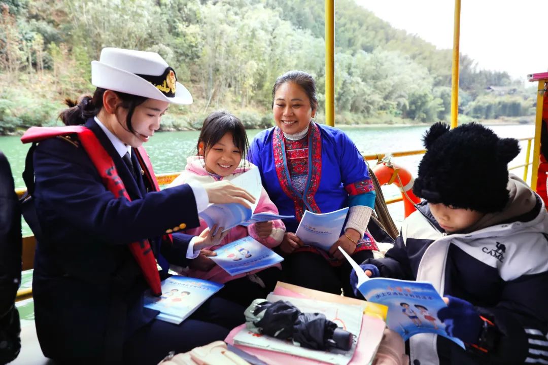 “小朋友们,上船后要站稳扶好,不要嬉戏打闹,安全乘船‘四要看’还有谁记得呀?”在柳州三江侗族自治县老堡渡口的渡船上,海事执法人员利用过渡间隙,与学生互动,讲授水上交通安全知识和乘船注意事项。