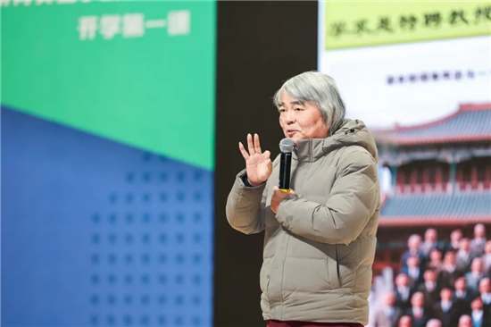 他希望同学们能够塑造新形象、锤炼新身体、培养新思维、树立新目标,在新学期开始新的奔赴,一起上春山,去经历百川浩荡,去遇见繁花遍地。