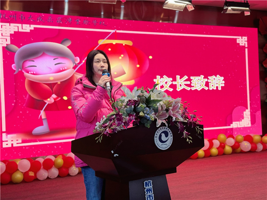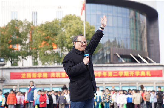 杭州市大成岳家湾实验学校的开学典礼上,校长鲍争志发表新学期致辞。龙是中华民族的图腾,寓意着吉祥和力量。作为“龙的传人”,鲍校长希望大成岳家湾学子要传承望岳精神,谱写时代华章。传承“望岳”精神就是要学习英雄岳飞的忠孝赤诚,厚植家国情怀,牢牢树立当代岳家君的爱国志向,将少年志内化于心外化于行。