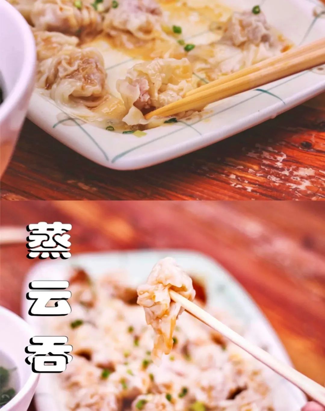 跟江南地带的蒸饺不同,蒸云吞则更加入味好吃。云吞皮晶莹剔透超级粉,两边放的辣酱则是灵魂的伴侣。吃上一口就能吃到满满的肉和鸡汤冻,真的鲜甜。