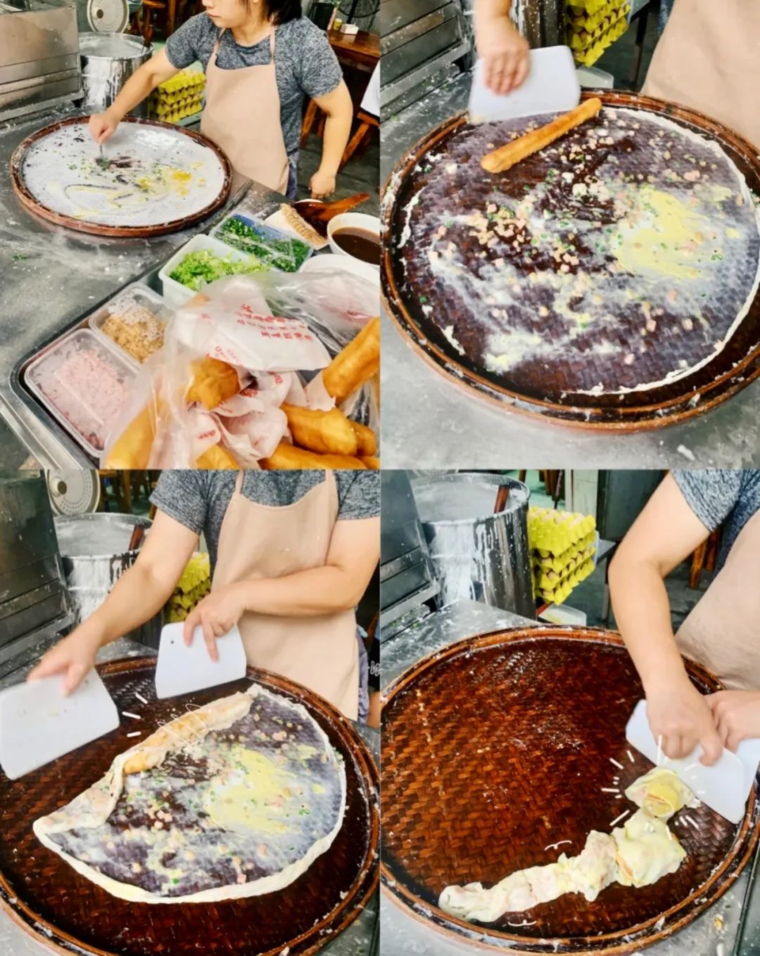 也许你早就吃过广东最好吃的肠粉,但用“簸箕”蒸出来的肠粉不仅有趣,还可以包裹油条、肉末、火腿等各种配菜,吃起来口感丰富软嫩好吃。