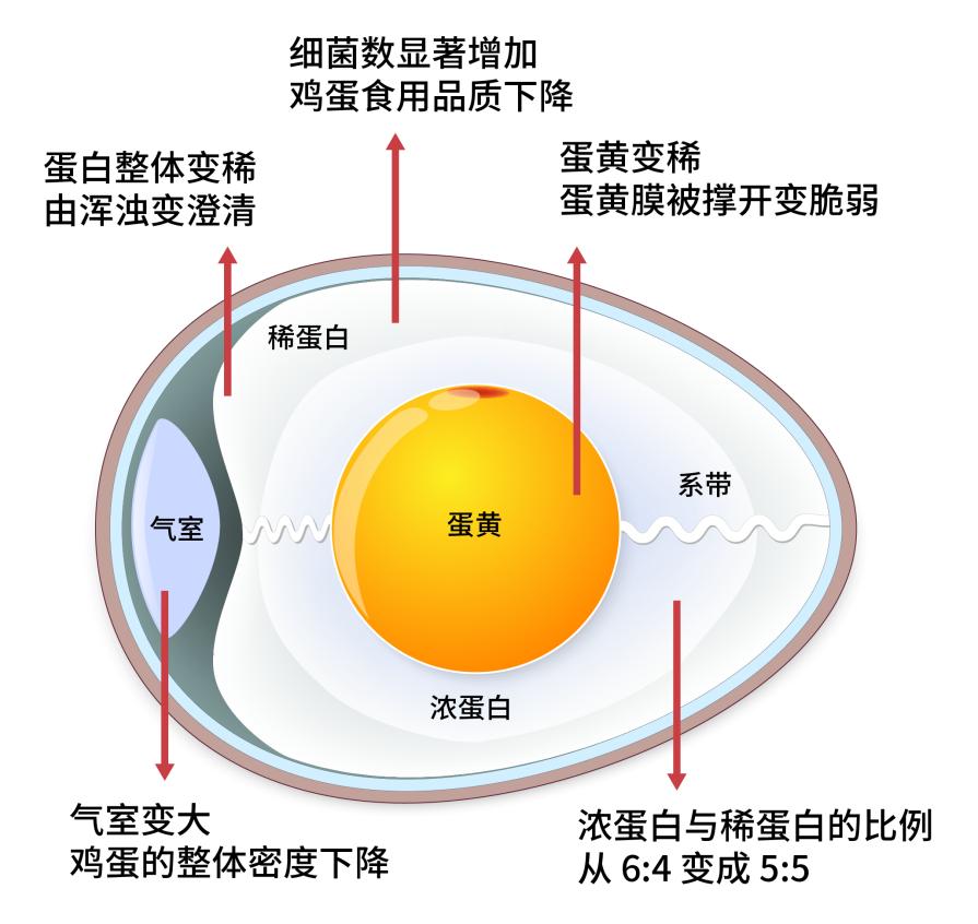 其实,鸡蛋放太久,即使没到发烂、发臭的地步,鸡蛋的各方面的品质也会下降。