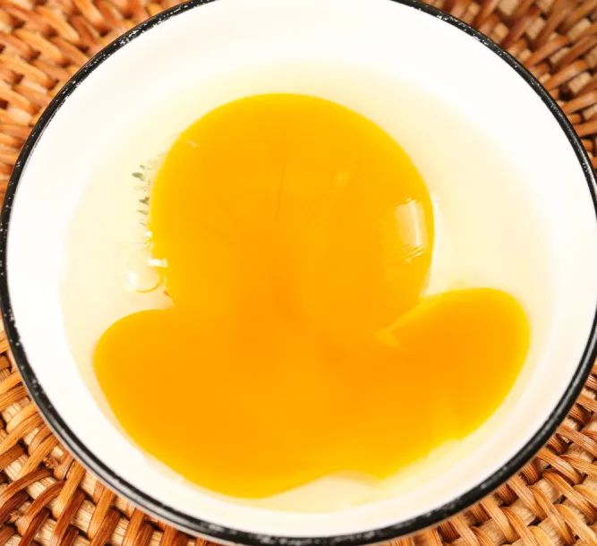 ⚠️ 蛋黄和蛋清都是平铺散开,比较容易流动,甚至蛋黄直接散开来,那就是不太新鲜。