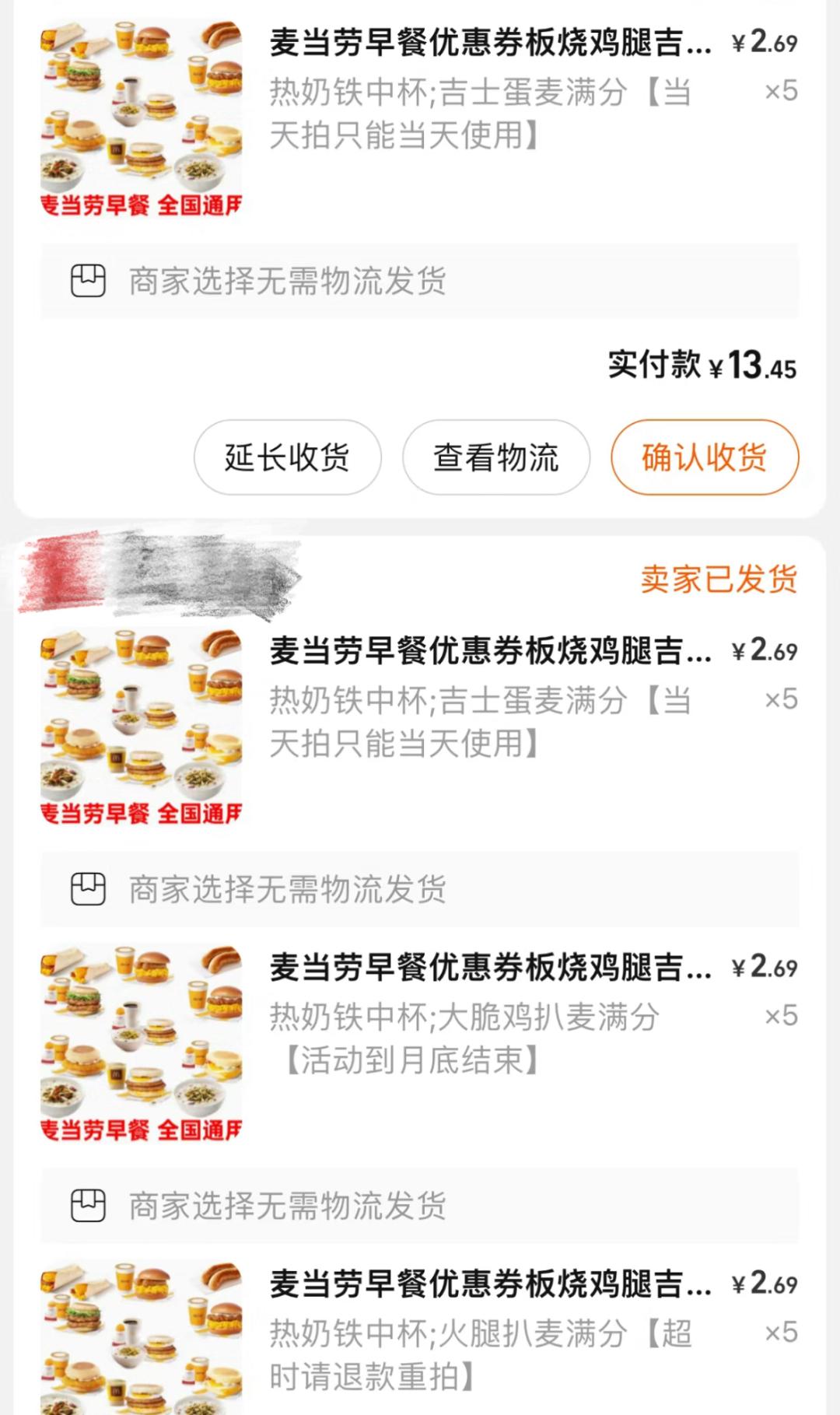 正所谓天下没有免费的午餐,麦当劳早餐免费的前提条件是“新人”,因此这事就变成了有心但无力薅的羊毛。但“聪明”的黄牛早就想好了对策,他们准时蹲守在抢券小程序上,然后再在闲鱼、淘宝等平台加价售出。于是免费早餐变成了廉价早餐,在网友的热烈讨论下,还出现了比价攻略,在1.5元到4元之间浮动。由于优惠券仅限活动期间使用,所以出现了大胃者一买买30份,然后用行李箱收货的奇景。