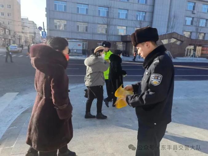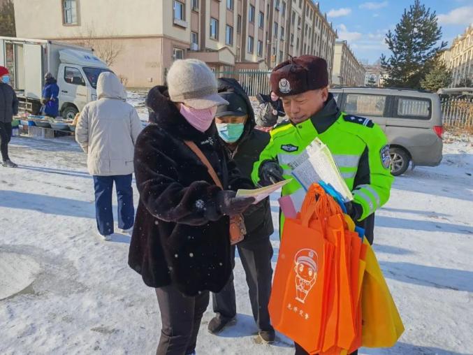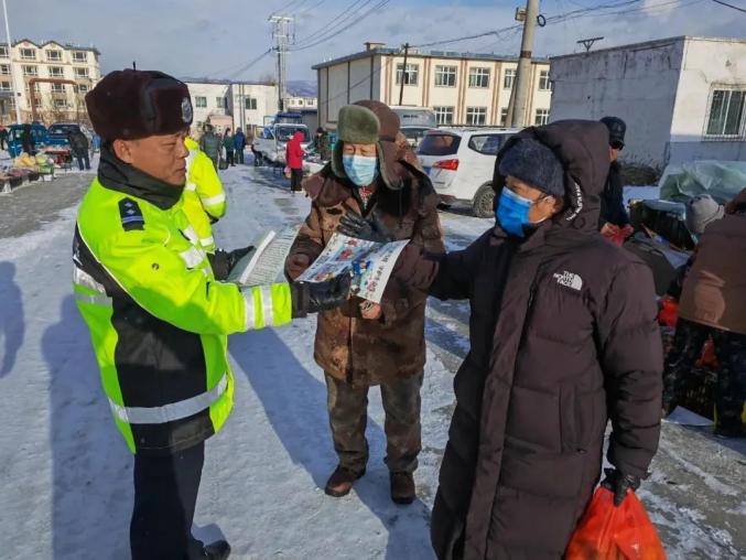 “大叔,您看一下这份农村地区冬季出行安全提示,平时出门时一定要注意自身安全”。龙井市公安局交警大队组织民警深入开山屯镇农贸大集开展交通安全宣传教育活动。针对农村地区“一老一小”特殊群体自我防护能力较差、交通安全意识淡薄等特点,民警重点围绕“安全走路、安全骑行、安全乘车”等内容,结合辖区道路交通实际和典型事故案例,详细讲解各类交通违法行为的严重危害,叮嘱大家要严格遵守交通法规,养成良好的出行习惯,做到安全文明出行。