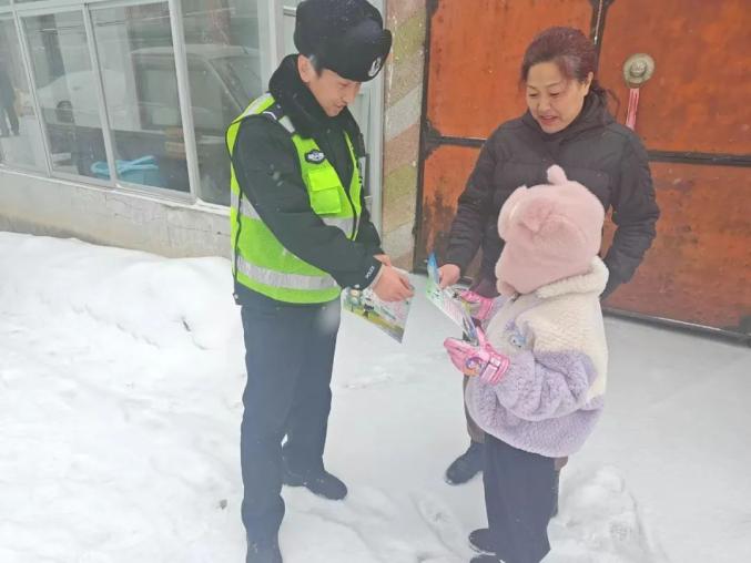 近日,白城市公安局交巡警支队组织民警来到洮北区岭下镇,组织开展“一老一小”交通安全宣传活动,用实际行动引导和呵护“一老一小”群体出行平安。活动中,民警来到村屯和百姓家中,通过“拉家常”的方式向老人、孩子们普及冬季道路交通安全知识,讲解如何安全过马路、如何安全乘坐交通工具、如何避免交通事故的发生,积极引导他们骑乘摩托车、电动自行车、三轮车时要佩戴好安全头盔,劝导村民要从思想上重视起来,加强自我保护,最大程度降低交通风险。
