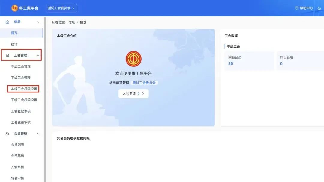 (2)点击左侧「工会管理」-「本级工会权限设置」;