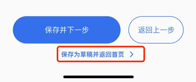 2.填写资料过程中,申请人可以使用草稿功能:点击「保存草稿并返回首页」,将填写的资料保存为草稿,下次打开时可重新进入上次编辑的页面。