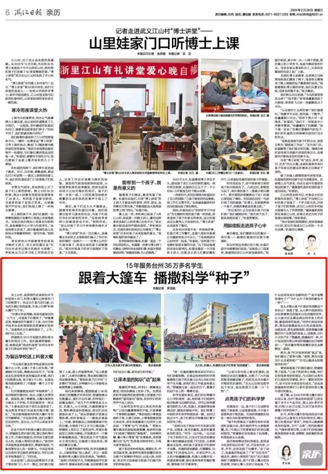 浙江日报:15年服务台州36万多名学生!跟着大篷车,播撒科学“种子”