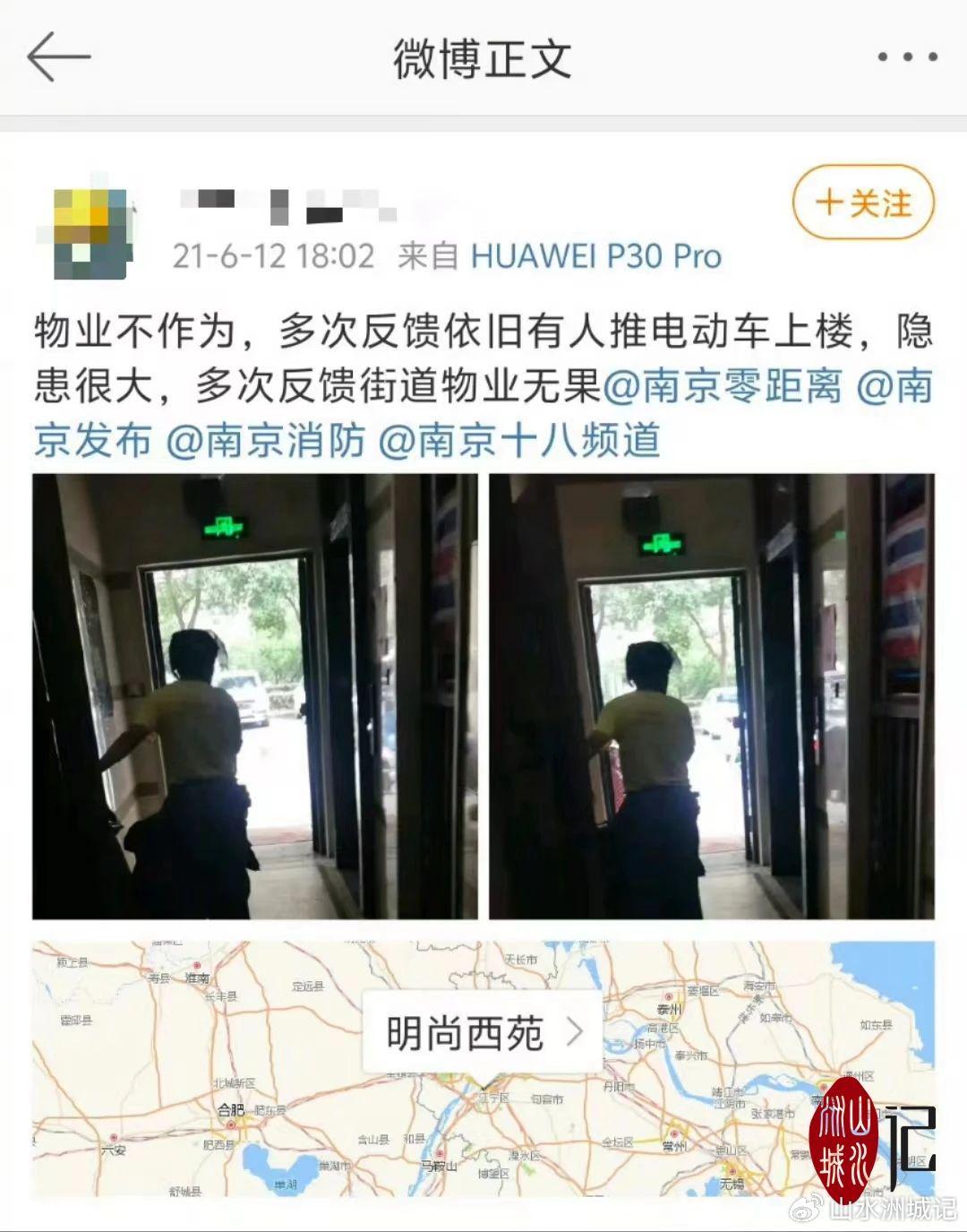 电动自行车起火防不胜防,是真的防不住吗?其实在南京“2·23”火灾事故中,早在2020年8月有网友就反映称:明尚西苑小区2栋架空层充电位置不够,没有照明,单元门里很多电动车,还有电动车上楼充电,多次和街道物业反映,一直在想办法,从年初开始到现在没有动静。天热车多、有失火隐患的情况也多次被提及。有网友2021年6月在微博发文称:“物业不作为,多次反馈依旧有人推电动车上楼,隐患很大,多次反馈街道物业无果。”