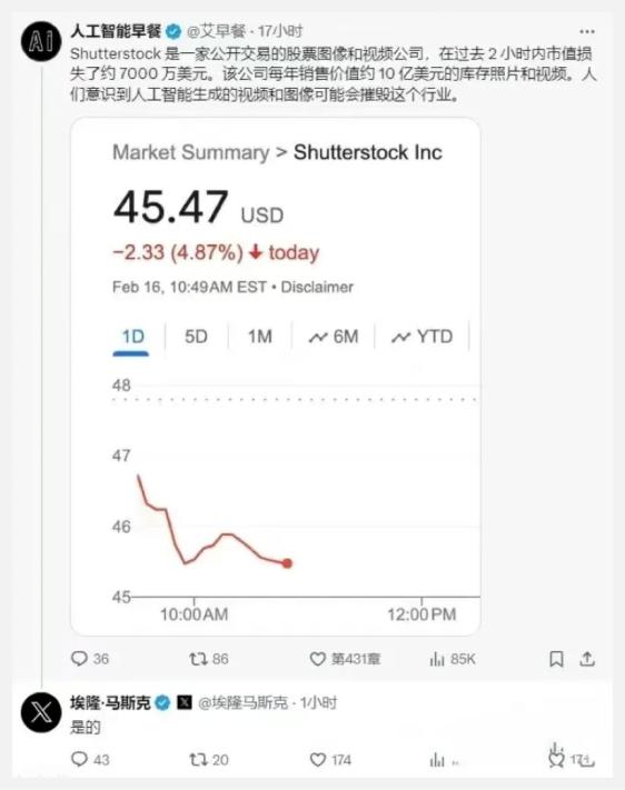 Sora推出第二天,图像处理、视频制作软件工具类公司Adobe,股价暴跌超过7%。